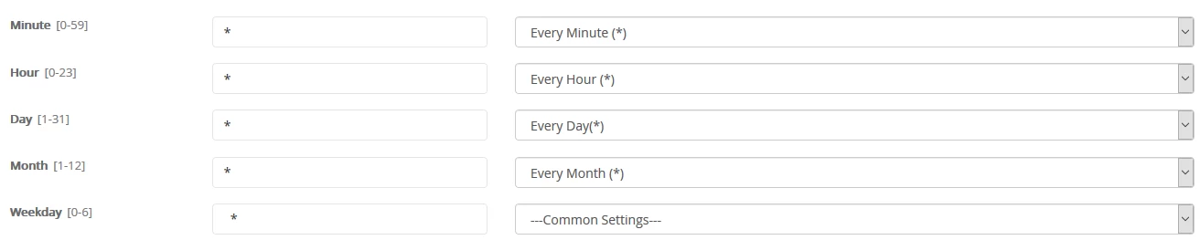- In the Command field, the desired command for execution is completed. Usually, it points to a predefined php script on the hosting, after which the "Add Cron Job" button is pressed.