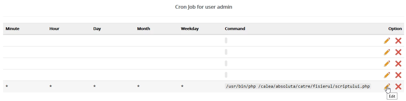 - Subsequently, the cron job can be viewed or edited at the bottom of the page in the section Cron Job for user admin.