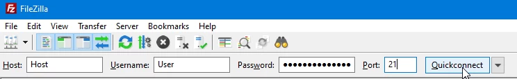In the connection fields of Filezilla, we will enter the data as follows:
